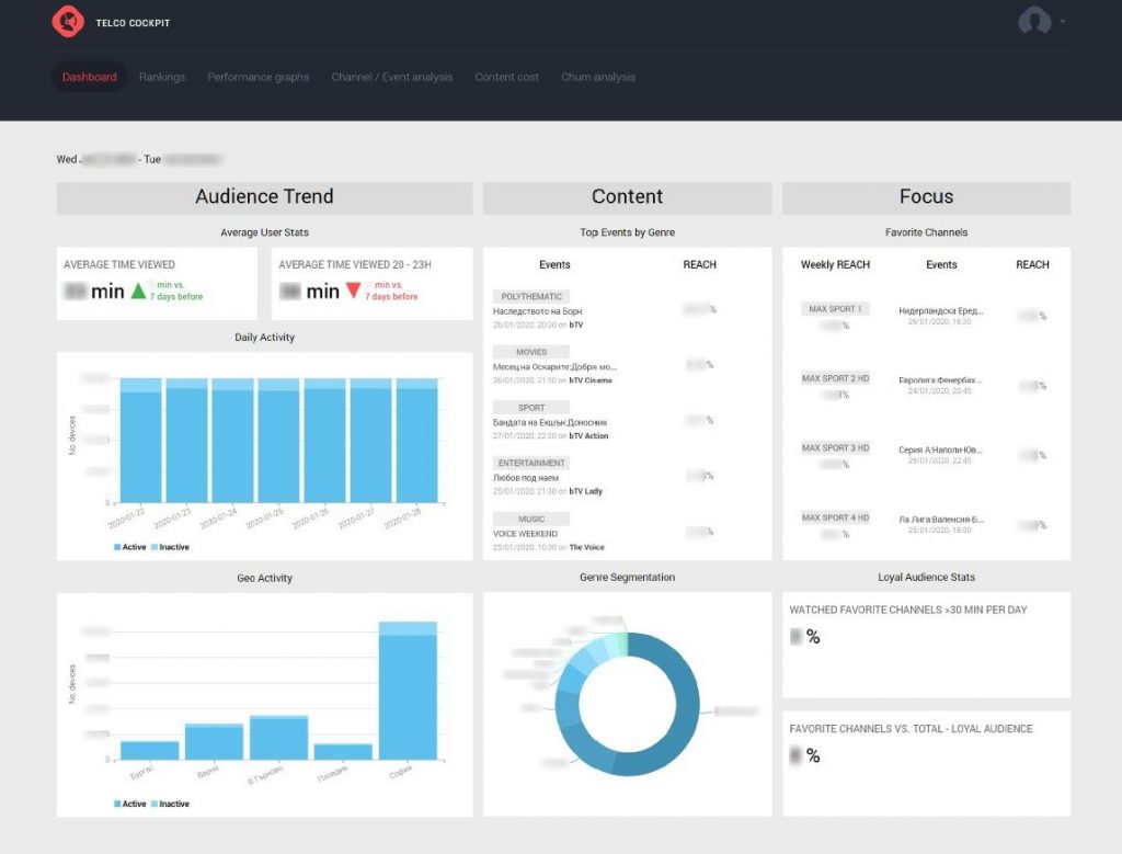 AdScanner developed a highly customized version of their AdScanner Telco Cockpit for A1 Bulgaria. With the help of this tailored solution, A1 Bulgaria is now able to analyze their entire universe of TV customers via AdScanner’s audience measurement KPIs. Furthermore, A1 Bulgaria is now able to input content cost variables to benchmark content and channel performance to assess RoI of content. Last but not least, AdScanner’s customized Telco Cockpit allows A1 Bulgaria’s product managers to identify clients who have a high likeliness to churn based on their individual TV usage patterns.