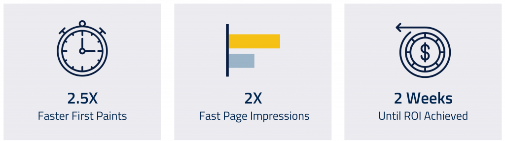 The Chrome User Experience (CrUX) Report for decathlon.de independently captured by Google for SEO Ranking showed an increase of fast page impressions by a factor of 2X.