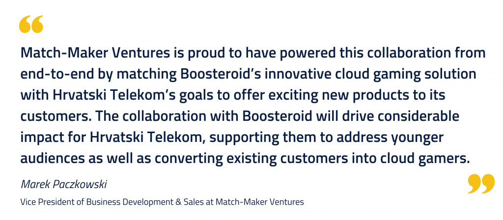 Boosteroid, in partnership with Match-Maker Ventures, the expert on corporate venturing and scaleup-corporate collaboration, has partnered with Hrvatski Telekom, the Croatian Operating Company of Deutsche Telekom Group, a globally leading telecommunications provider, to bring advanced cloud gaming even closer to gamers from Croatia.