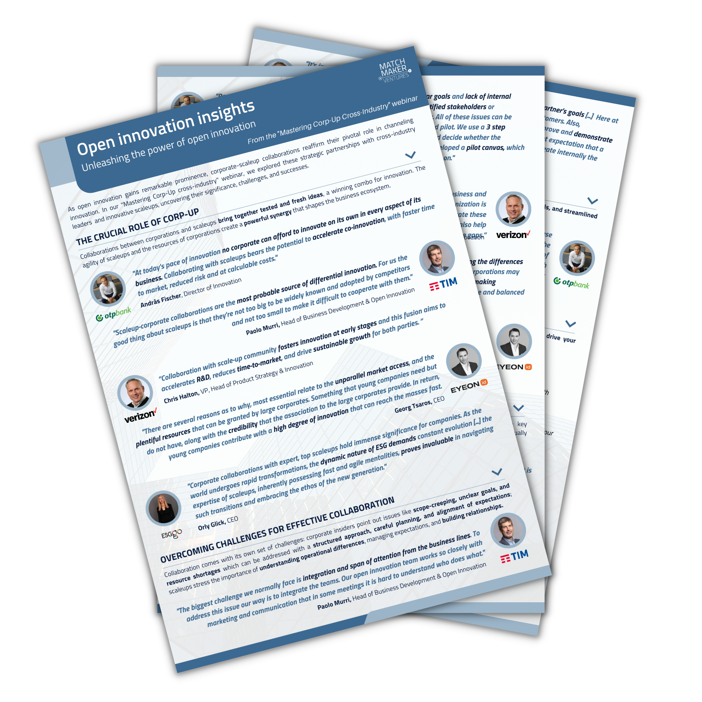 In our recent “Mastering Corp-Up cross-industry” webinar on September 6th, Match-Maker Ventures explored these strategic partnerships with cross-industry leaders and innovative scaleups, uncovering their significance, challenges, and successes.