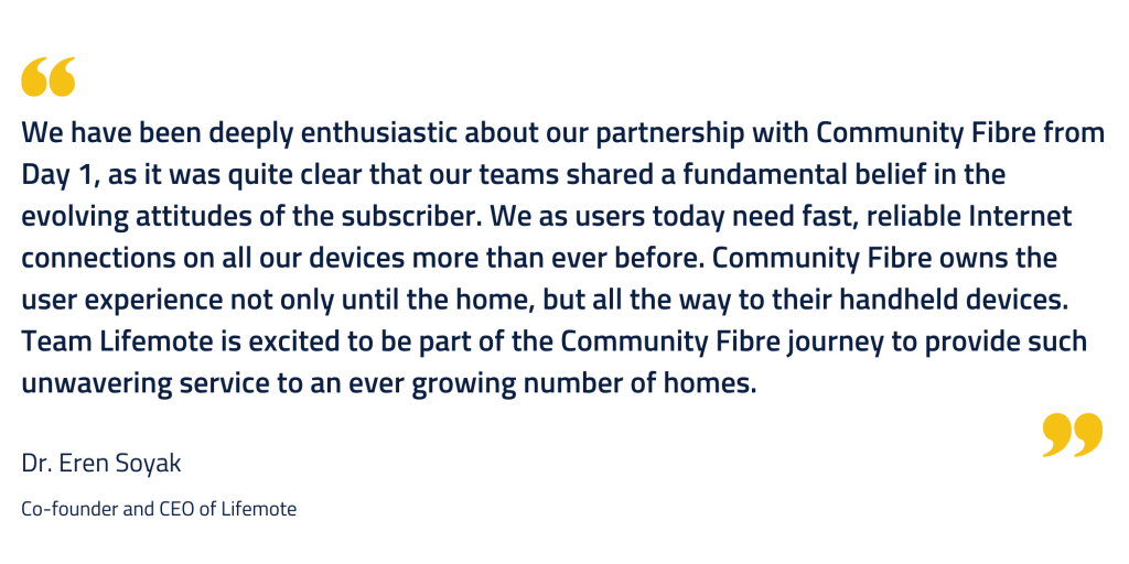 Community Fibre, who have been looking for a solution to increase the visibility of Wi-Fi problems and offer best-in-class customer service, today uses Lifemote to proactively fix any problems before subscribers complain and reactively provide better solutions faster when interacting with subscribers. The joint Lifemote – Community Fibre proactive taskforce, leveraging years of experience and best practices, highlights home network issues. For example, homes in need of extra mesh nodes are identified, along with those with misconfigured retail devices and those overusing 2.4GHz. The taskforce then intervenes in order to ensure all such subscribers use Wi-Fi in the most smooth and efficient way. This approach both increases customer satisfaction and deflects support calls preemptively.
